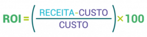 Agora, é só aplicar a fórmula do ROI. Basta diminuir a receita do custo e dividir tudo pelo custo, ou seja: